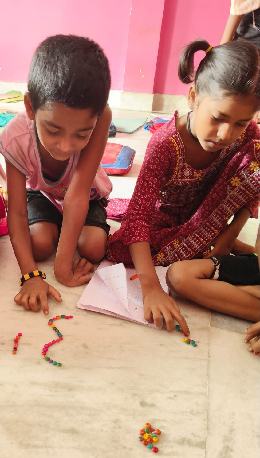 We identified 30 children from Goitanpur, Charmana Village, in the Khandoghosh Block of Purba Bardhaman District in 2023. These children were academically behind in basic literacy and numeracy skills due to the prolonged COVID-19 lockdown. We established this correctional FLN Centre to uplift these children and mainstream them into the village’s formal primary school.